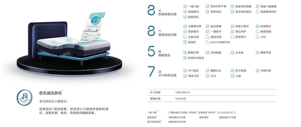 功能:一键入眠+智能放松+智能减压+音乐减压放松