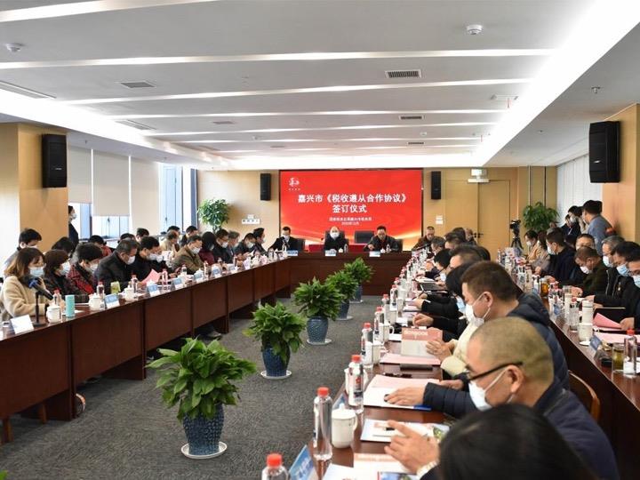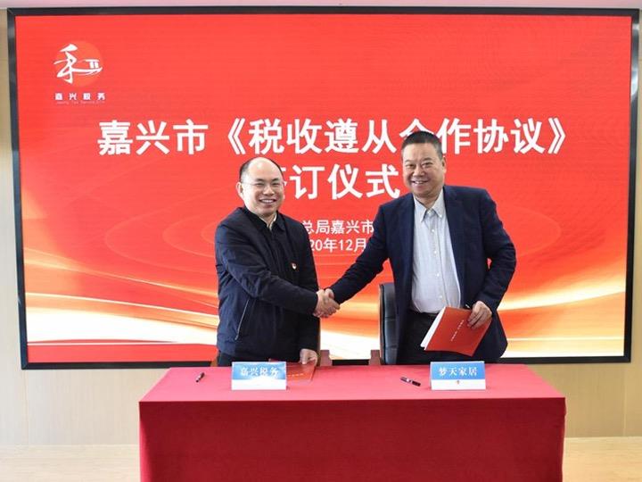 2020年12月15日上午,嘉兴市税务局举行2020年《税收遵从合作协议》签订仪式暨税企高层座会,23家企业集团的高层管理人员参加了活动。其中,麒盛科技、梦天家居、嘉欣丝绸等5户大企业完成“签约”。